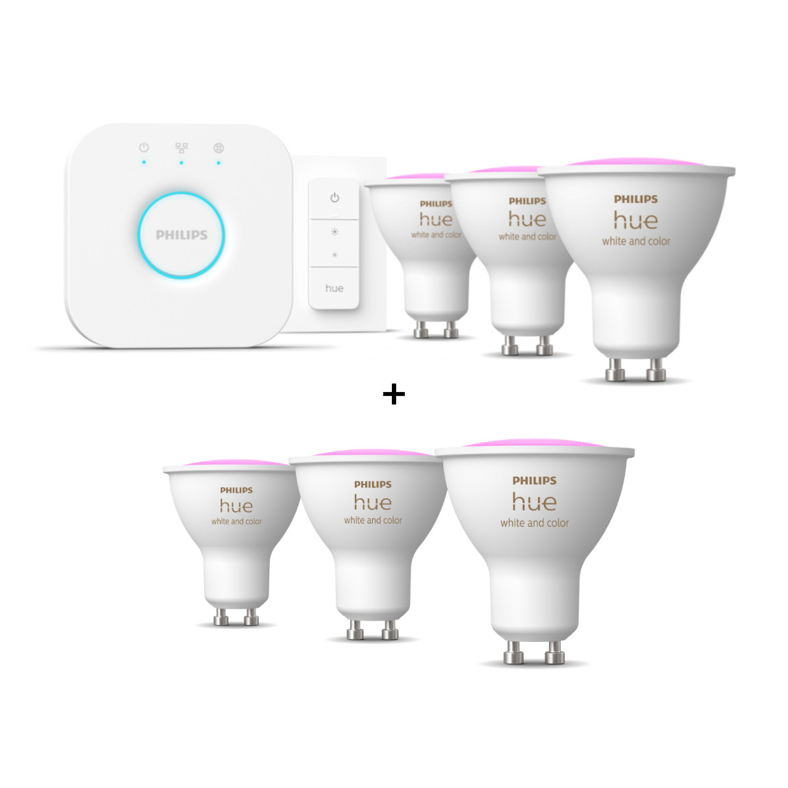 Philips Hue White Ambiance GU10 LED Lampe 400lm - 6er-Set + Bridge
