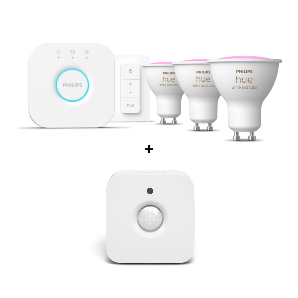 Philips Hue White & Color Ambiance GU10 400lm Starter-Set + Dimmschalter + Bewegungsmelder Indoor