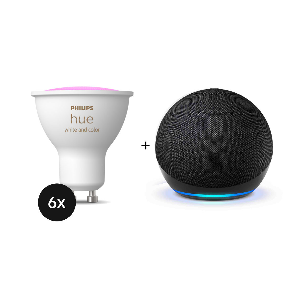 Philips Hue White & Color Ambiance GU10 LED Lampe 400lm - 6er-Set + Echo Dot