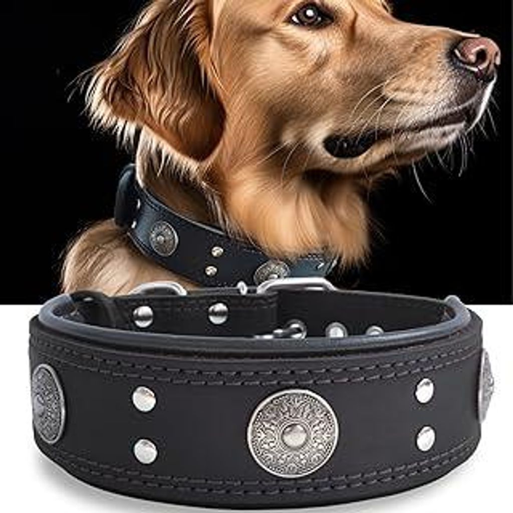 Hundehalsband Leder, 5 cm Breites Robustes Echtes Lederhalsband, Handgefertigt, Weich und Auffällige Beste Wahl für Große und Mittelgroße Hunde...