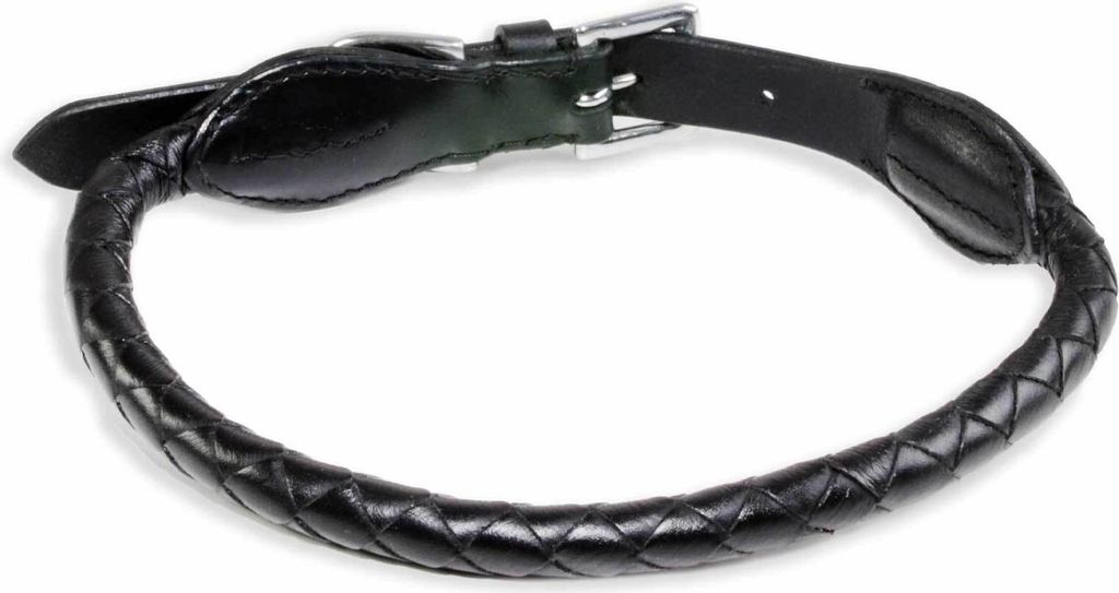Digby & Fox - Hundehalsband, Aufgerolltes Leder, Schnalle ER2101 (M/L - Neckline: 47 cm-52 cm) (Schwarz)
