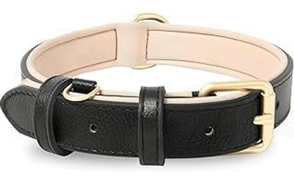 HEELE Hundehalsband, Halsband Leder mit gepolstert und echtes Leder, Verstellbar für Welpen Kleine Mittel Grobe Hunde, Schwarz, M