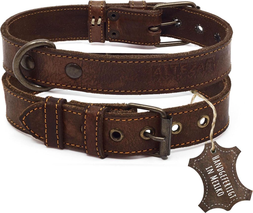 ALTEZAR Braunes Hundehalsband aus weichem, leichtem Leder, strapazierfähiges Lederhalsband L - Halsumfang: 39 cm - 51 cm
