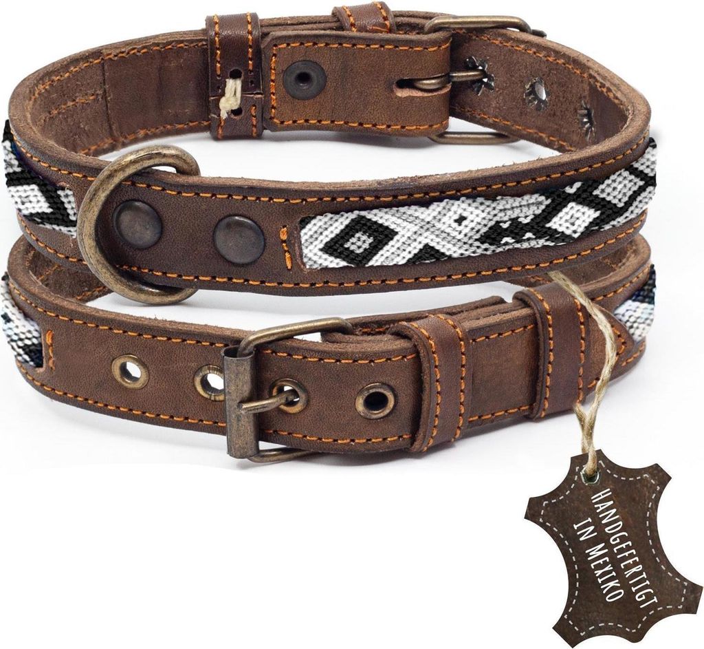 ALTEZAR elegantes Hundehalsband Leder Tribal Schwarz-Weiß Handgemacht in Mexiko - L