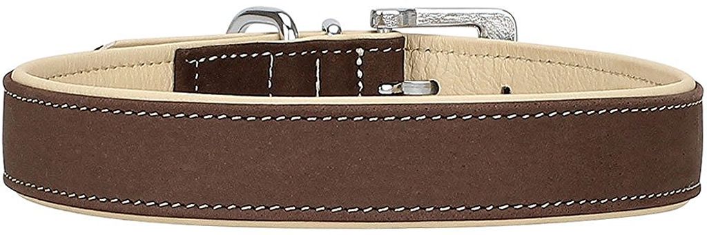Nubuk-Echt-Leder Hundehalsband Orlando 46x56x3,0 cm Braun-Beige