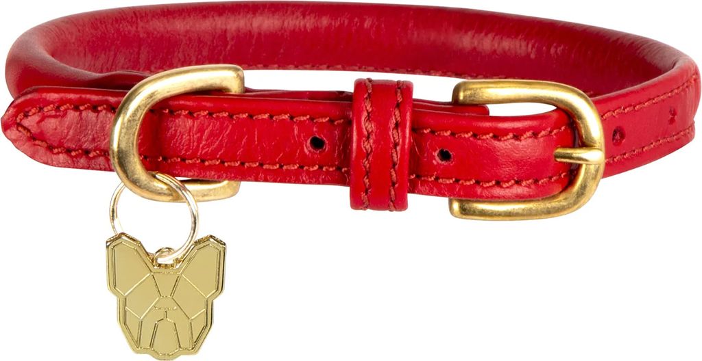 Digby & Fox - Hundehalsband, Aufgerolltes Leder, Schnalle ER2101 (XXXS - Neckline: 17 cm-22 cm) (Scharlachrot)