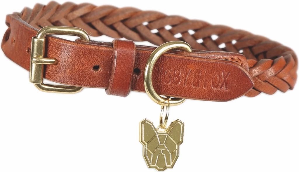 Hochwertiges rund geflochtenes Hundehalsband aus Leder Earth (Braun) - von William Walker L