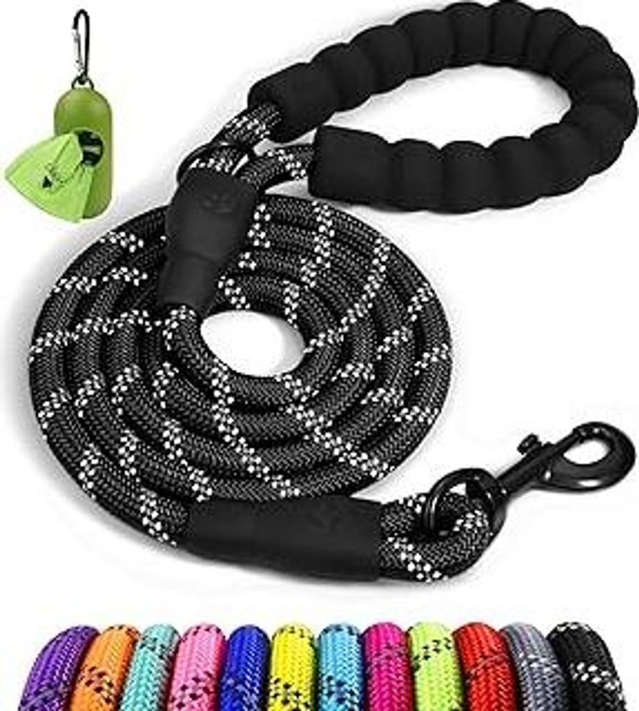 Robuste Hundeleine für große und mittelgroße Hunde, reflektierende Nylonleine mit weich gepolstertem Griff für Spaziergänge und Training