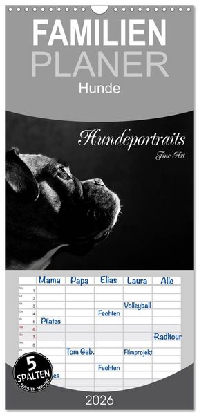 Familienplaner 2026 - Hundeportraits Fine Art mit 5 Spalten (Wandkalender, 21 x 45 cm) CALVENDO