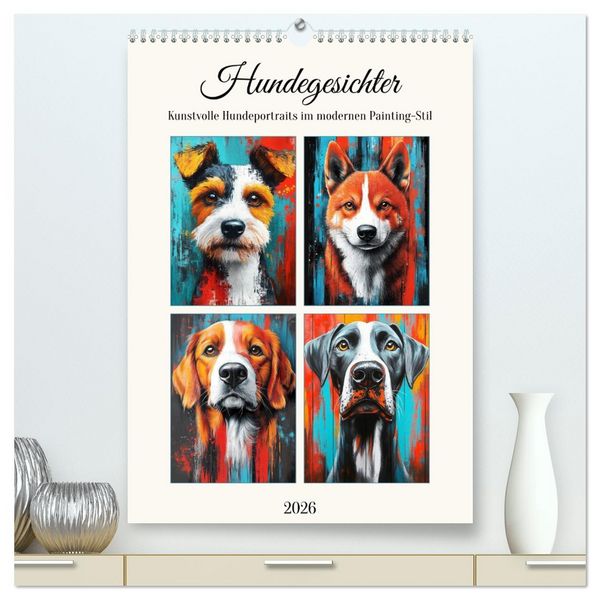 Hundegesichter. Kunstvolle Hundeportraits im modernen Painting-Stil (hochwertiger Premium Wandkalender 2026 DIN A2 hoch), Kunstdruck in Hochglanz