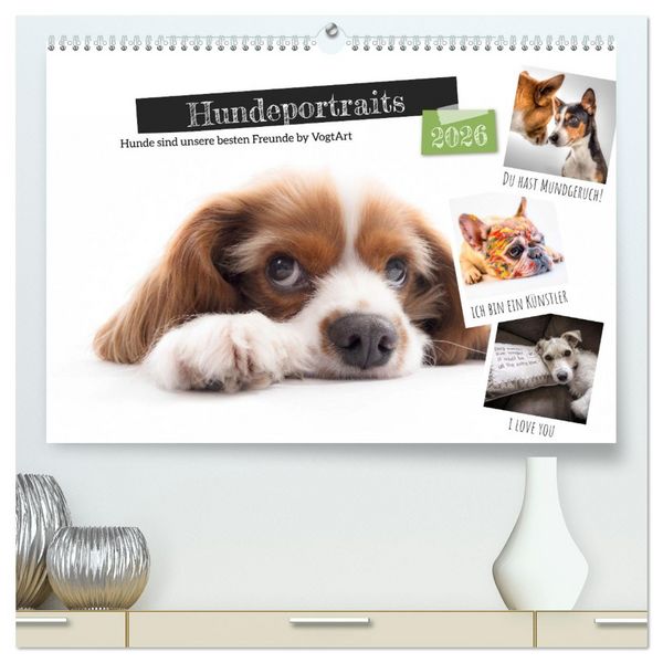 Hundeportraits, Hunde sind unsere besten Freunde by VogtArt (hochwertiger Premium Wandkalender 2026 DIN A2 quer), Kunstdruck in Hochglanz