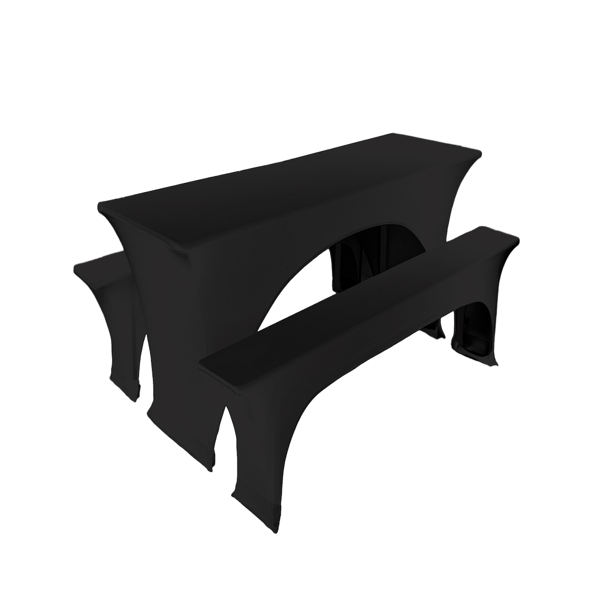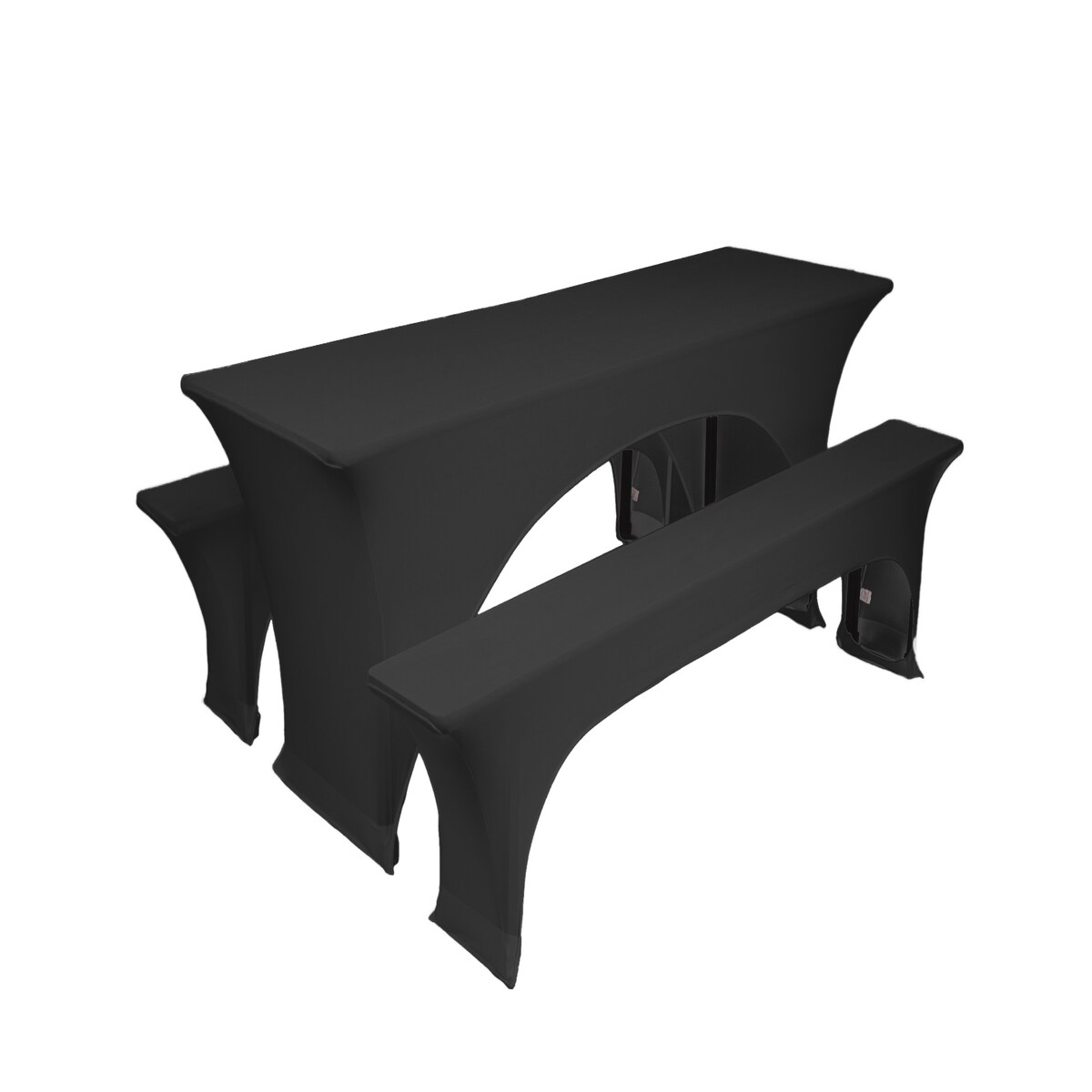TexDeko Stretch Hussen für Bierzeltgarnitur gepolstert 220 x 70cm Blickdicht Biertischhusse 5TLG Set (Schwarz)