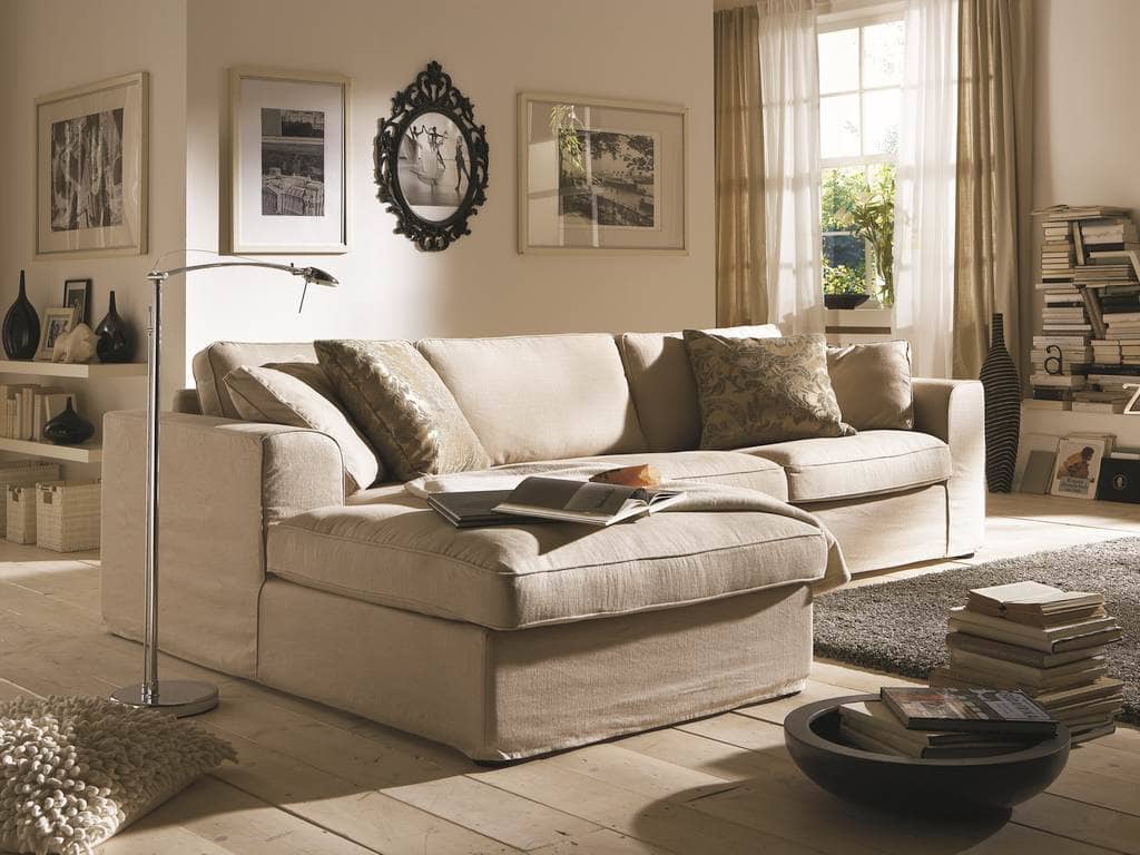 Hussen Ecksofa Fabien mit Diwan im Landhausstil modern