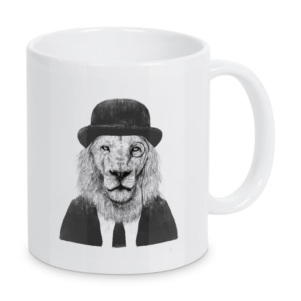 Tasse "Sir Lion" artboxONE - Tiere,Schwarzweiß,Für Papa,Männer,Lustig - Lion,Löwe,Melone,Melon,Hat,Hut,Funny,Sir,Gentlemen,Edel,Zylinder,Löwe mit hut