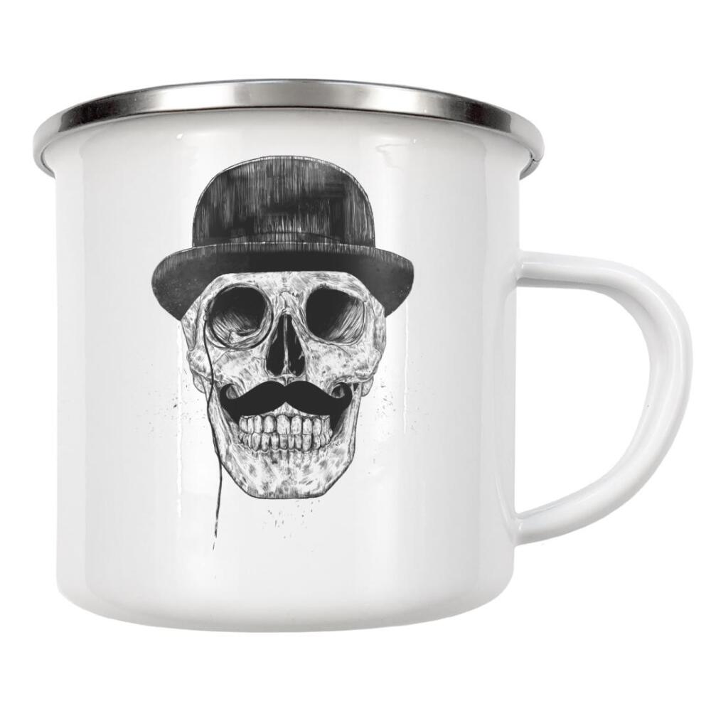 Emaille Tasse "Gentlemen never die" artboxONE - Schwarzweiß,Für Papa,Männer - Gentlemen,Moustache,Schnurrbart,Melone,Hat,Hut,Feiner mann
