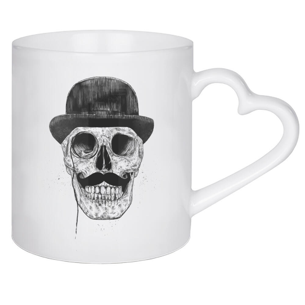 Herztasse "Gentlemen never die" artboxONE - Schwarzweiß,Für Papa,Männer - Gentlemen,Moustache,Schnurrbart,Melone,Hat,Hut,Feiner mann