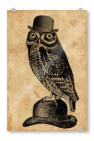 Acrylglasbild "Eule in einem Hut" artboxONE - Tiere,Fashion - Eule in einem hut,Eule,Hut,Melone,Tier,Wald,Wirbeltier,Lustig