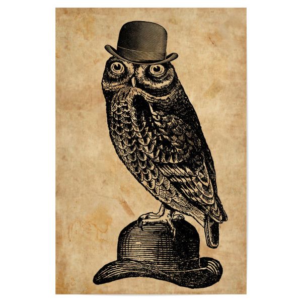Poster "Eule in einem Hut" artboxONE - Tiere,Fashion - Eule in einem hut,Eule,Hut,Melone,Tier,Wald,Wirbeltier,Lustig