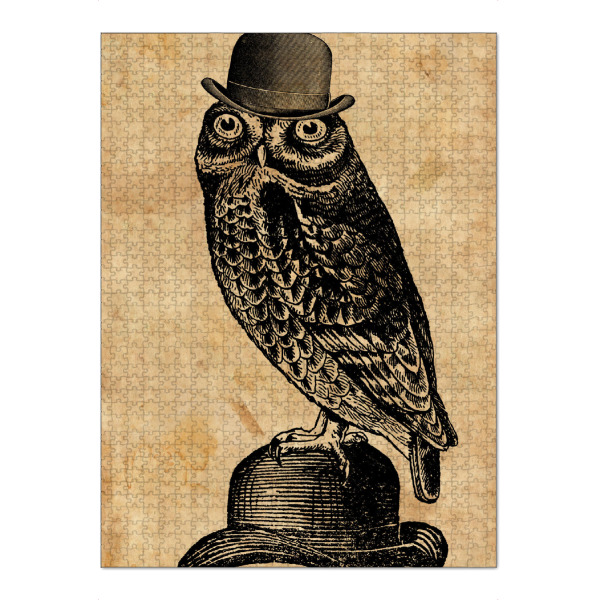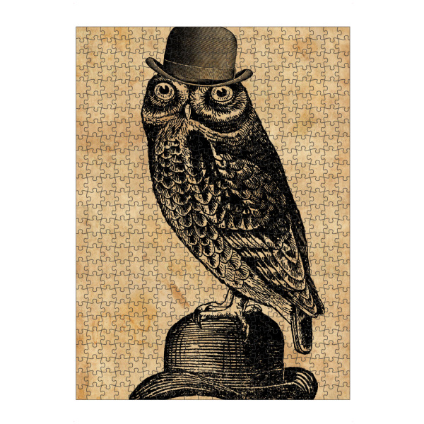 artboxONE Puzzle "Eule in einem Hut" artboxONE - Tiere,Fashion - Eule in einem hut,Eule,Hut,Melone,Tier,Wald,Wirbeltier,Lustig