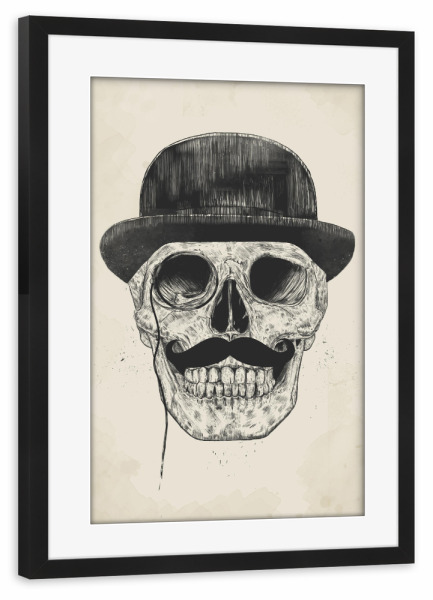 Poster mit weißem Rahmen "Gentlemen never die" artboxONE - Schwarzweiß,Für Papa,Männer - Gentlemen,Moustache,Schnurrbart,Melone,Hat,Hut,Feiner mann