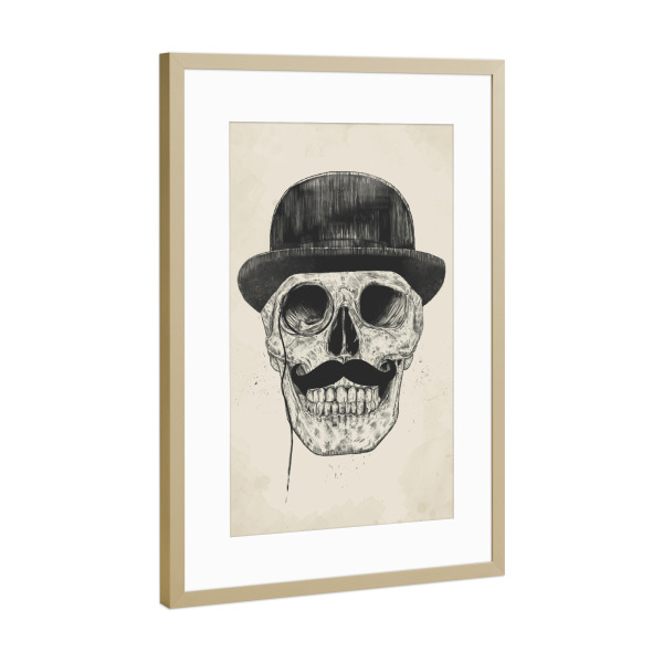 Poster mit Rahmen Gold "Gentlemen never die" artboxONE - Schwarzweiß,Für Papa,Männer - Gentlemen,Moustache,Schnurrbart,Melone,Hat,Hut,Feiner mann