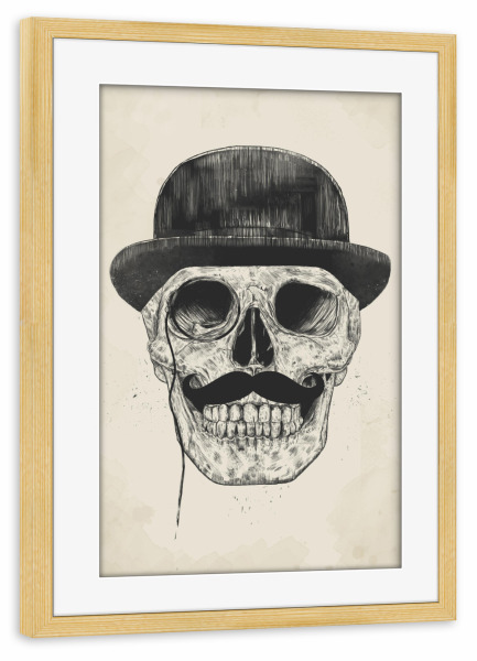 Poster mit Rahmen kiefer "Gentlemen never die" artboxONE - Schwarzweiß,Für Papa,Männer - Gentlemen,Moustache,Schnurrbart,Melone,Hat,Hut,Feiner mann