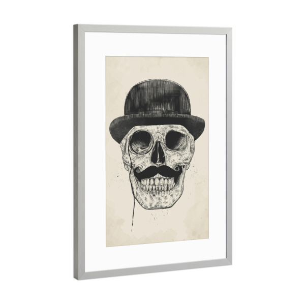 Poster mit Rahmen Silber "Gentlemen never die" artboxONE - Schwarzweiß,Für Papa,Männer - Gentlemen,Moustache,Schnurrbart,Melone,Hat,Hut,Feiner mann