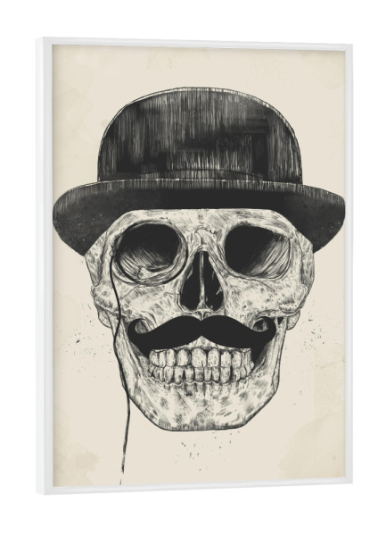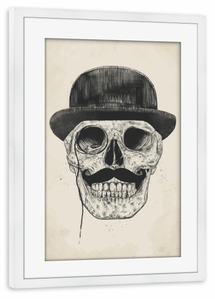 Poster mit Rahmen weiß "Gentlemen never die" artboxONE - Schwarzweiß,Für Papa,Männer - Gentlemen,Moustache,Schnurrbart,Melone,Hat,Hut,Feiner mann