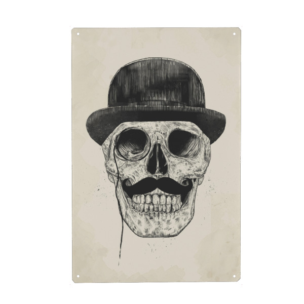 Metall Poster "Gentlemen never die" artboxONE - Schwarzweiß,Für Papa,Männer - Gentlemen,Moustache,Schnurrbart,Melone,Hat,Hut,Feiner mann