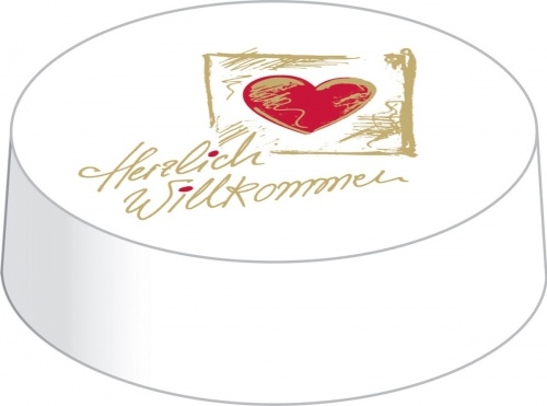 Mank Paper Cap aus Mattkarton Herzlich Willkommen Ø 80 mm, 200 Stück - Trinkschutz Glasabdeckung Schutz Hygieneschutz