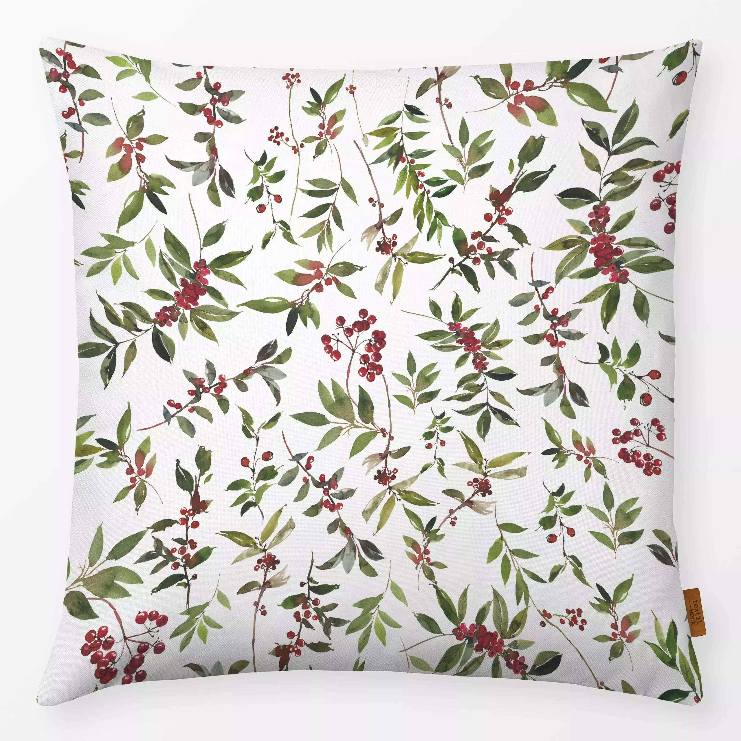 Kissen Cottagecore Winter Berries - Blumen & Florales, Winter - von „Uta Naumann"; Natur, Zweige, Beeren, Weihnachten, Herbs...