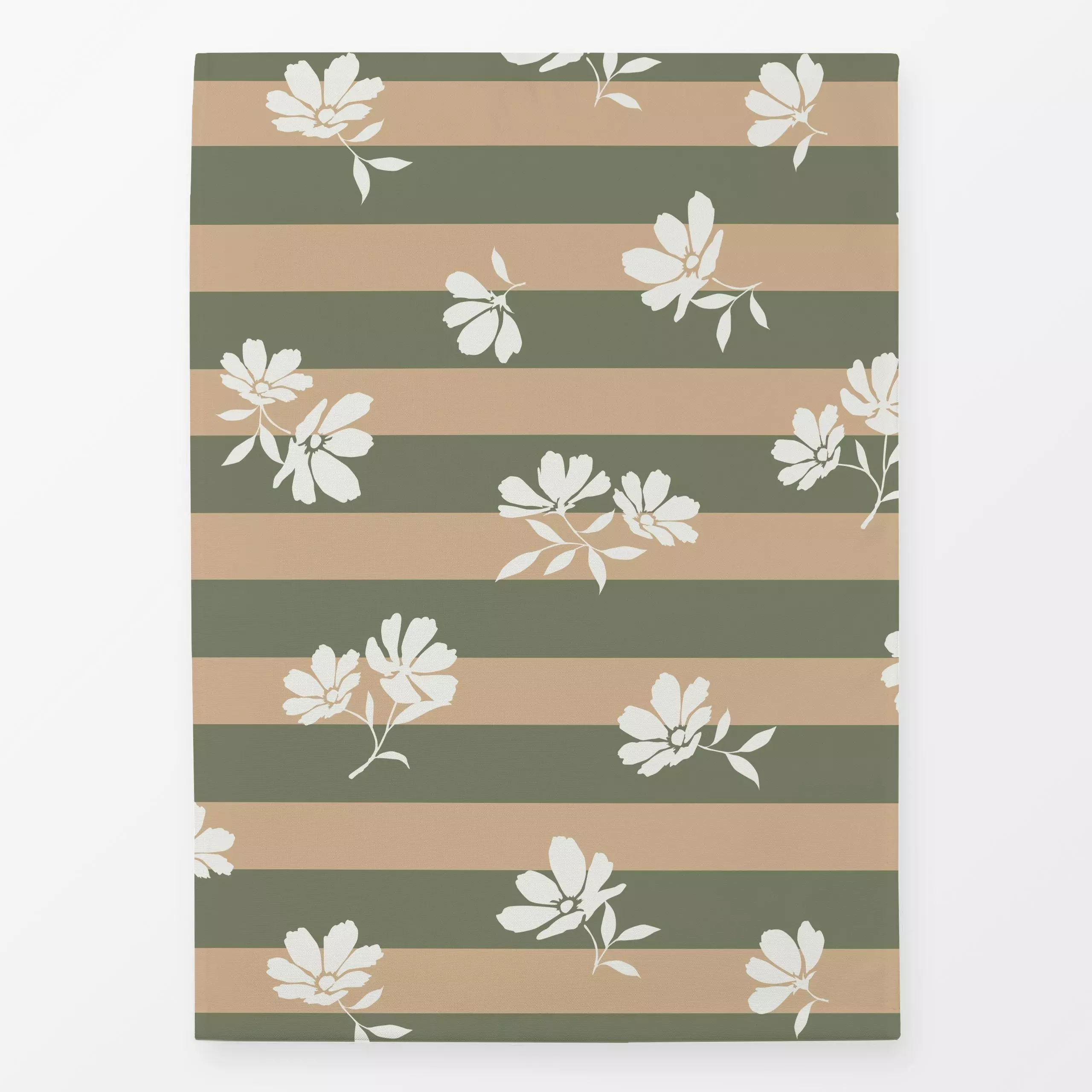 Geschirrtücher Blüten gestreift grün braun - Blumen & Florales, Herbst - von „Katrin Graff"; Streifen, Blüten, Herbst, Herbs...