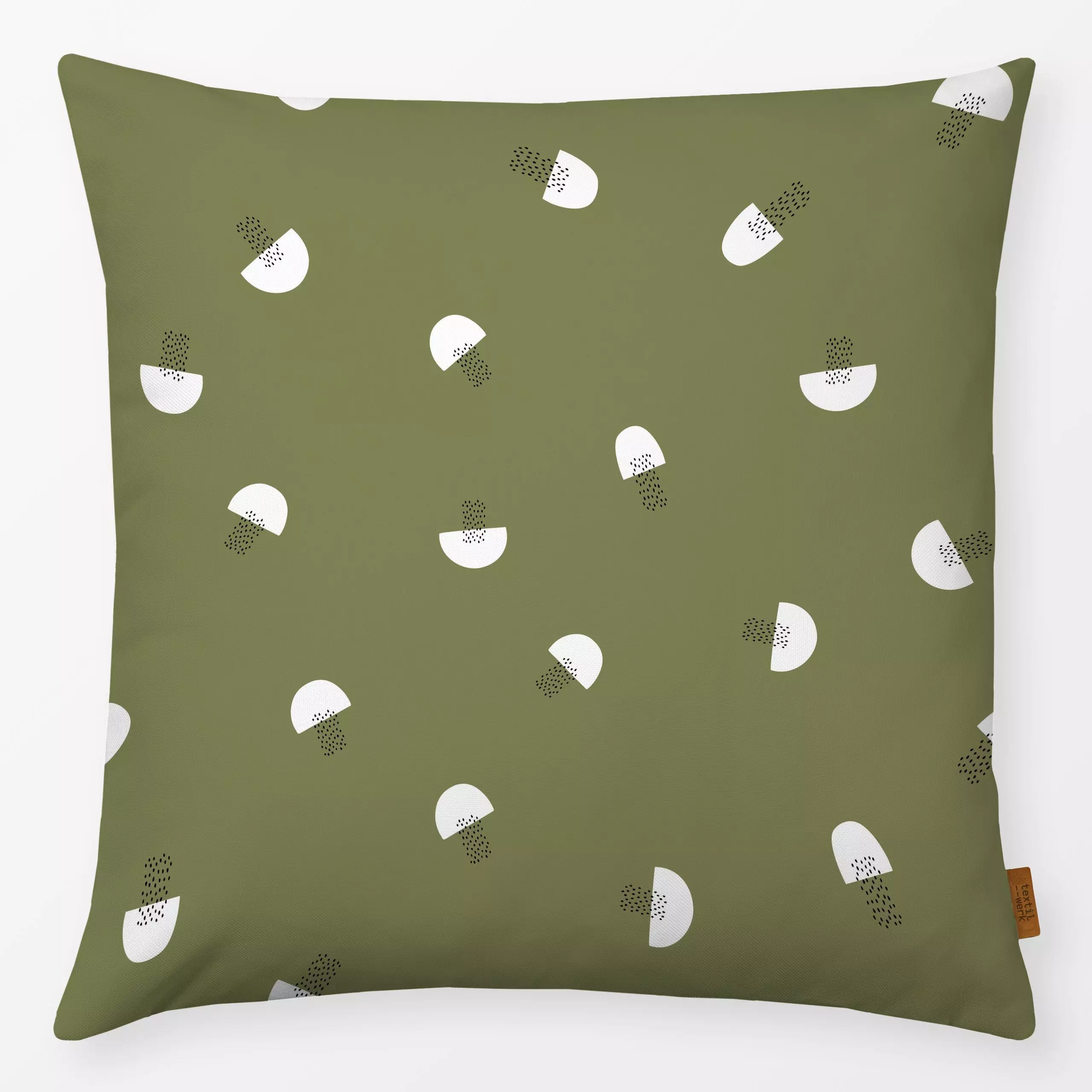 Kissen Muster Pilzpunkte -grün - Herbst - von „Heyduda"; abstrakt, skandinavisch, Hygge, Weihnachten, modern, grafisch, Herb...
