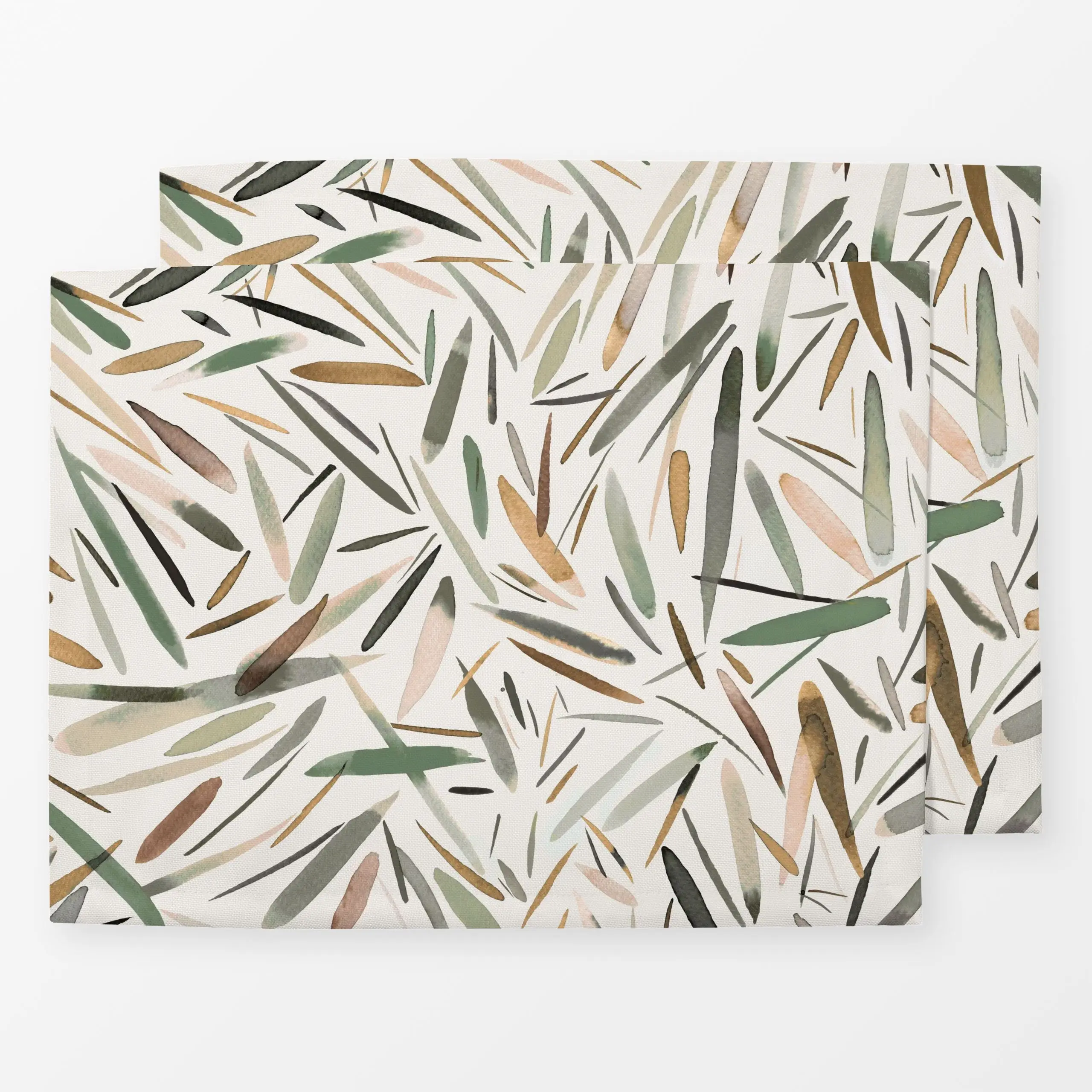 Tischset Vintage Pinselstriche Streifen - Pflanzen & Botanik - von „Ninola Design "; Aquarell, Blätter, Bambus, beige, Herbs...