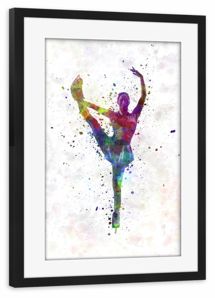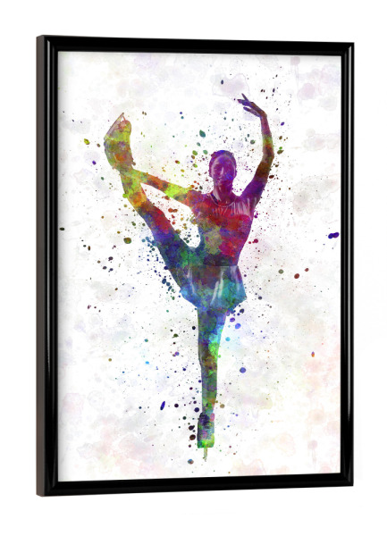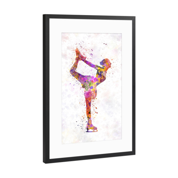 Poster mit Rahmen schwarz "Watercolor ice skating-c" artboxONE - Sport