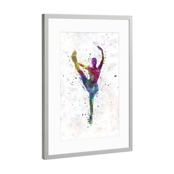 Poster mit Rahmen Silber "Watercolor ice skating-c" artboxONE - Sport