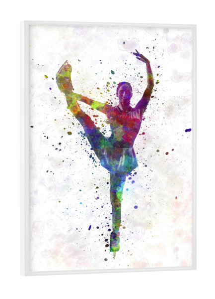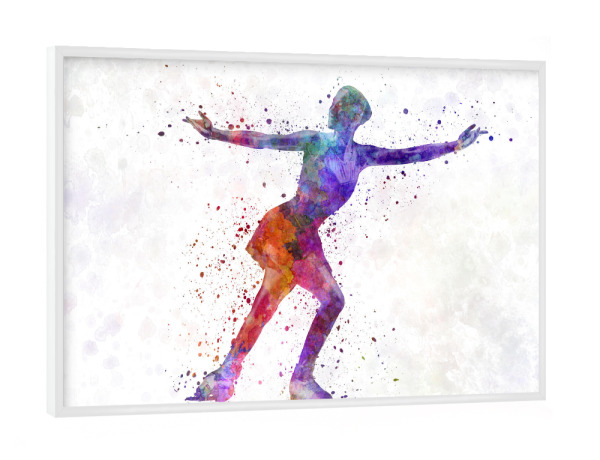 Poster mit Rahmen weiß "Watercolor ice skating-b" artboxONE - Sport