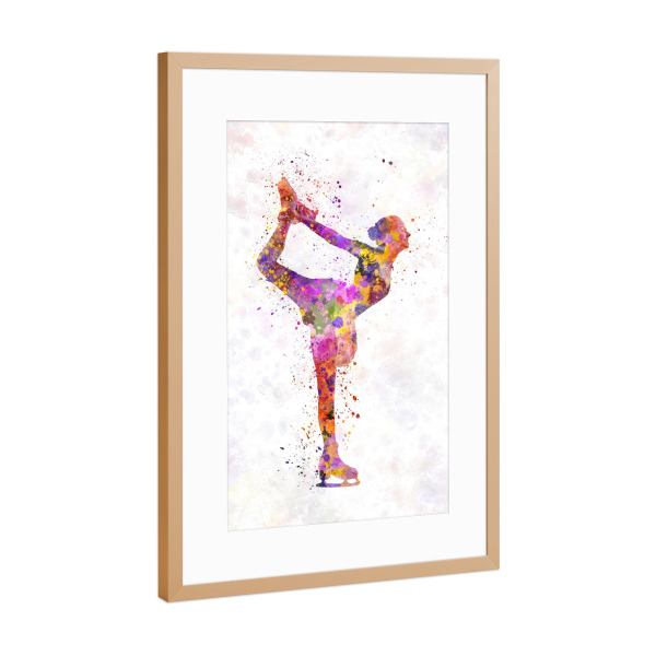 Poster mit Rahmen Kupfer "Watercolor ice skating-b" artboxONE - Sport