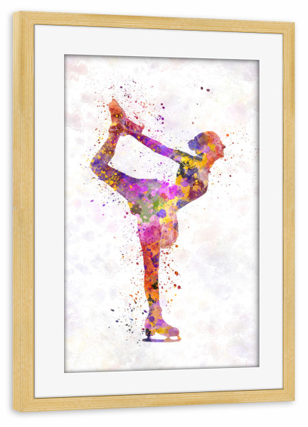Poster mit Rahmen kiefer "Watercolor ice skating-b" artboxONE - Sport