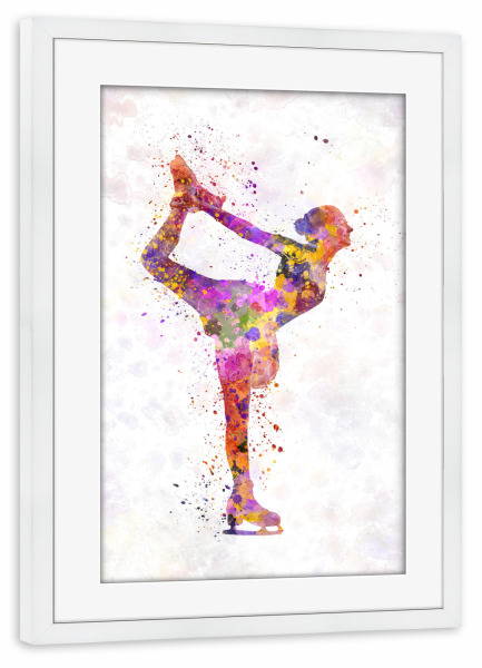 Poster mit weißem Rahmen "Watercolor ice skating-c" artboxONE - Sport