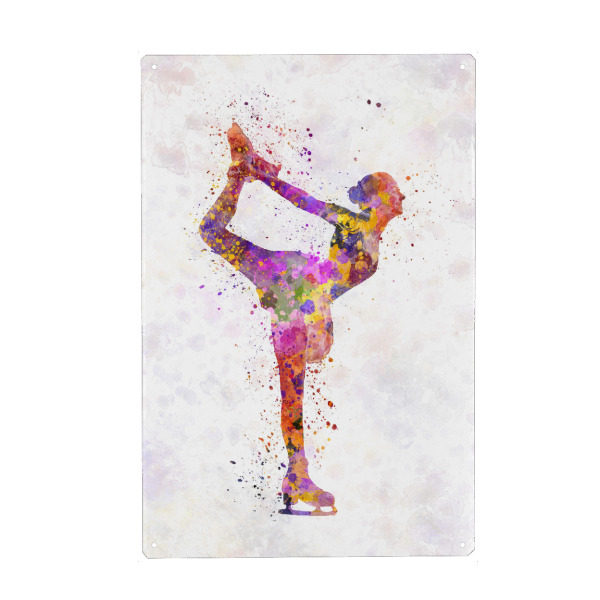 Metall Poster "Watercolor ice skating-b" artboxONE - Sport - Watercolor,Sport,Sports,Color,Illustration,Decorative,Young,Jump,Ice skating,Skater