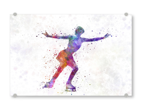 Acrylglasbild "Watercolor ice skating" artboxONE - Sport - Watercolor,Sport,Sports,Color,Illustration,Decorative,Young,Jump,Ice skating,Skater