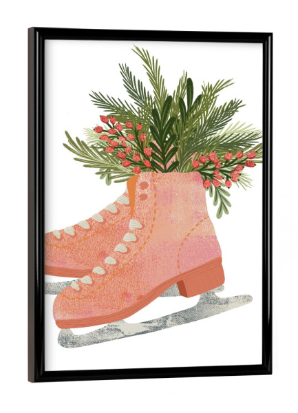Poster mit schwarzem Rahmen "Ice skating and foliage" artboxONE - Floral,Sport,Weihnachten