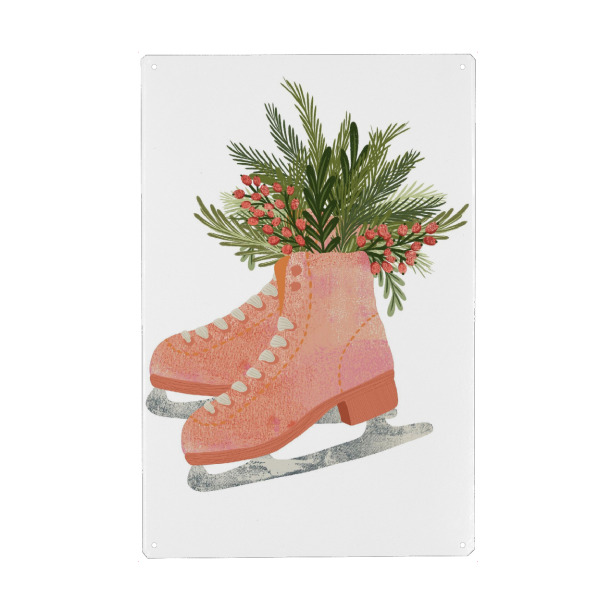 Metall Poster "Ice skating and foliage" artboxONE - Floral,Sport,Weihnachten