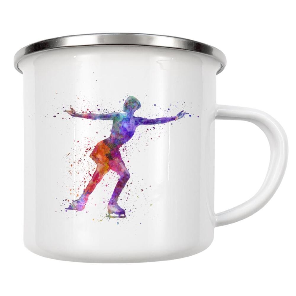 Emaille Tasse "Watercolor ice skating" artboxONE - Sport - Watercolor,Sport,Sports,Color,Illustration,Decorative,Young,Jump,Ice skating,Skater