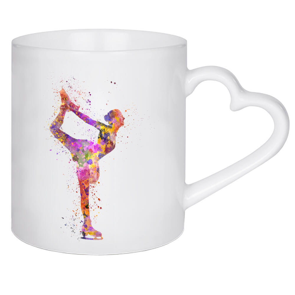 Herztasse "Watercolor ice skating-b" artboxONE - Sport - Watercolor,Sport,Sports,Color,Illustration,Decorative,Young,Jump,Ice skating,Skater