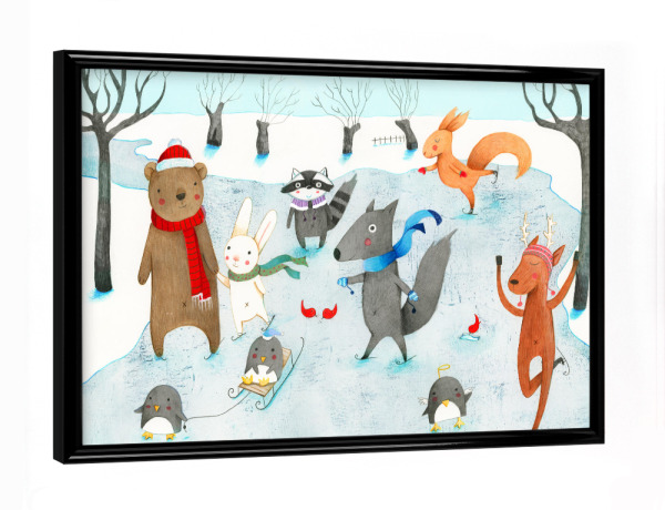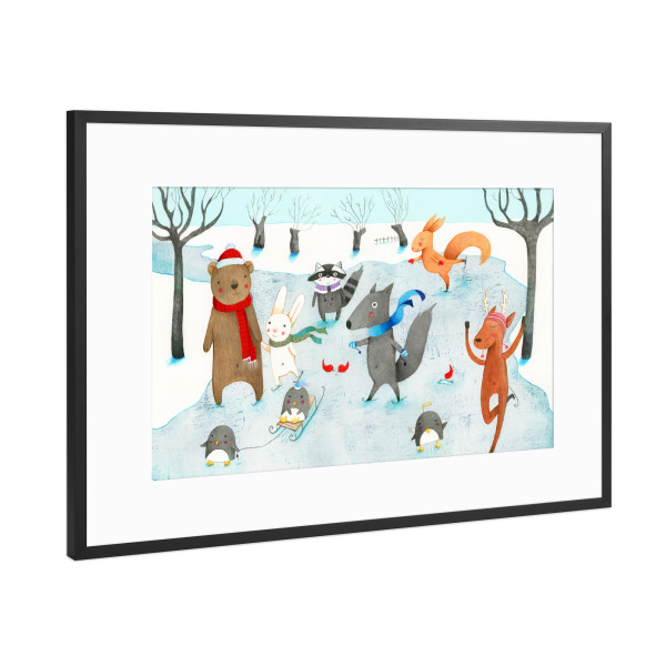 Poster mit Rahmen Schwarz (Metallic) "Ice Skating" artboxONE - Natur,Für Kinder,Tiere