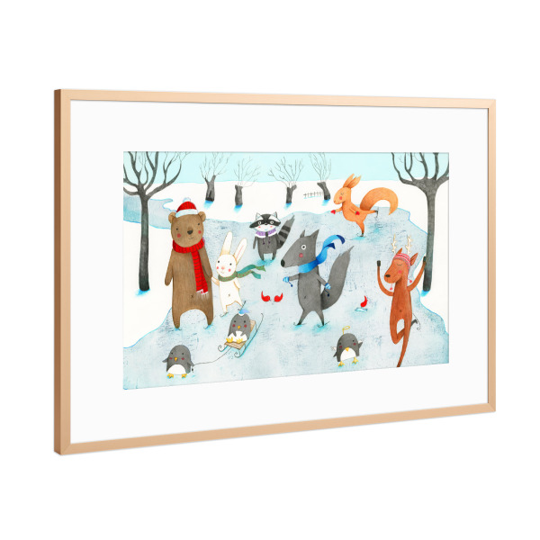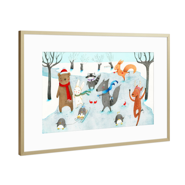 Poster mit Rahmen Gold "Ice Skating" artboxONE - Natur,Für Kinder,Tiere