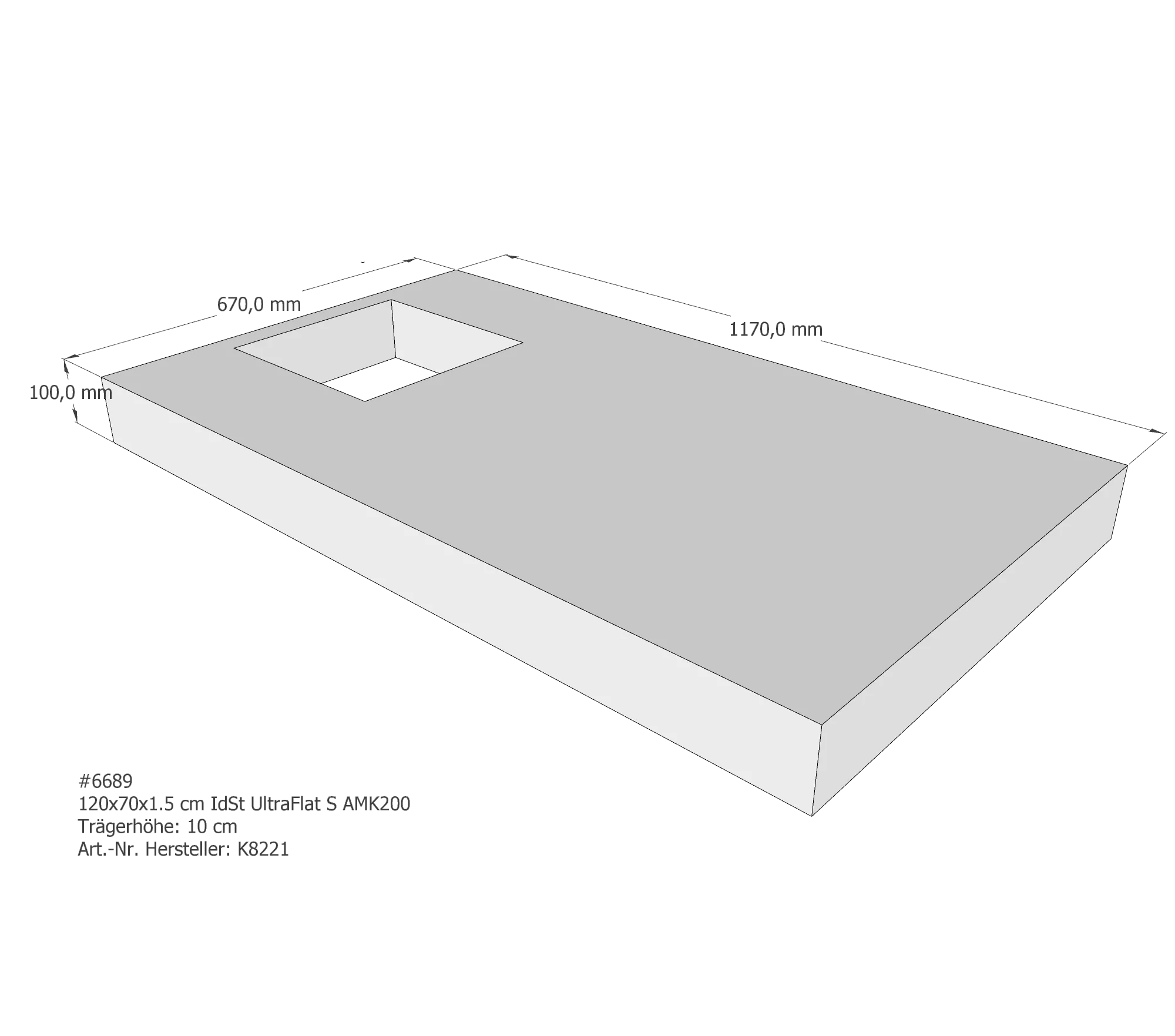 Duschwannenträger passend für Ideal Standard Ultra Flat S 120 × 70 × 1,5 cm