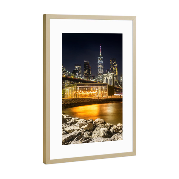 Poster mit Rahmen Gold "Manhattan Impression aus Brooklyn" artboxONE - Städte / New York,Reise,Architektur